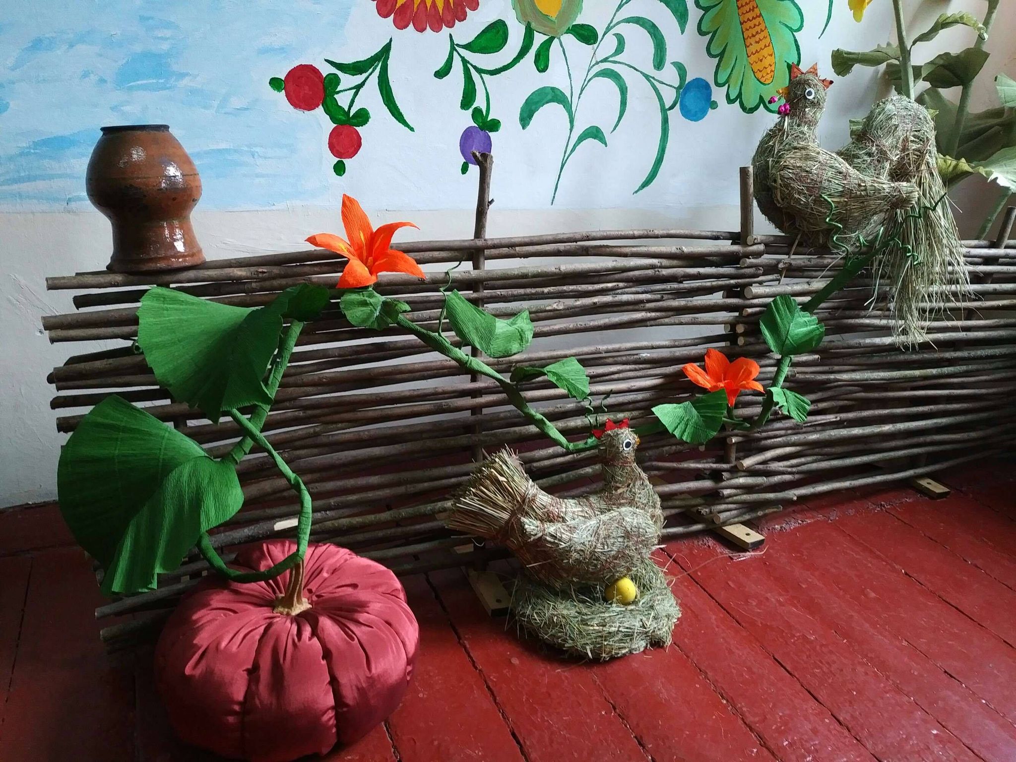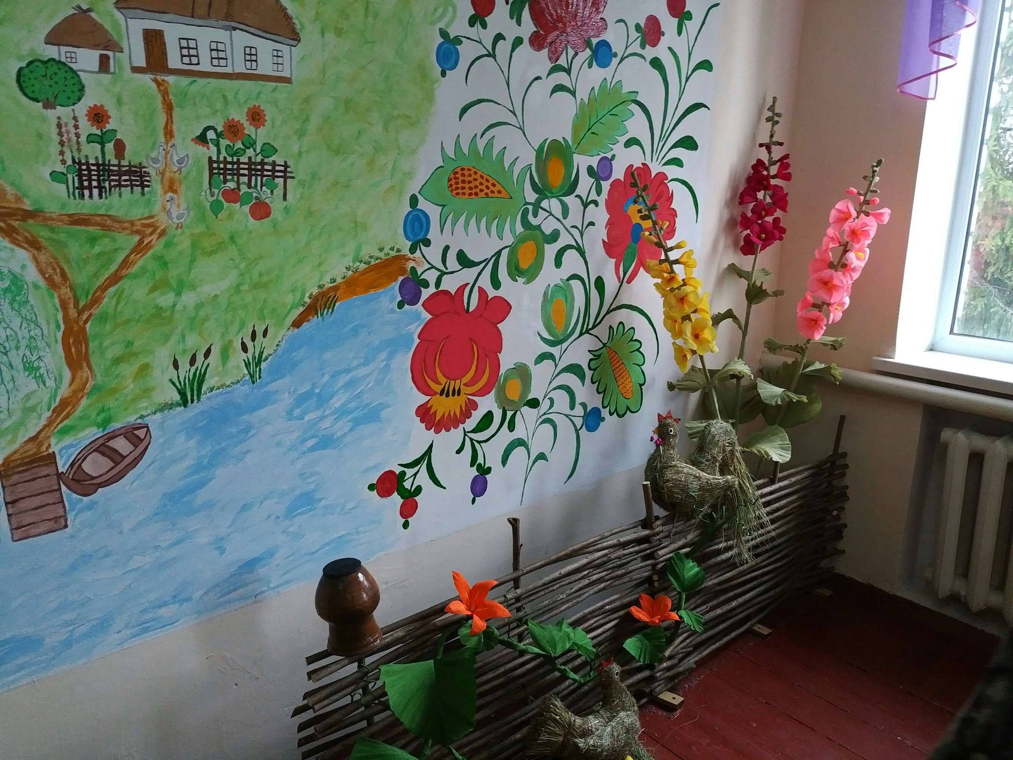 Простора і світла, білосніжна та з безліччю невипадкових акцентів. На стінах розташувався намальований пейзаж села Макариха. Прикрасою кімнати стала інсталяція: пузатий гарбуз в’ється та перелазе через тин, який обсіли вправно сплетені з сіна кури. Милують око в куточках майстерні маки та мальви, зроблені власноруч майстринями села. На поличках різними кольорами сяють гори ниток. Повсюди визирають рукодільні дрібниці, які немов формують єдину тематичну експозицію. Це простір для творчості, а також для майстер-класів і творчих ідей. Майстерня рукоділля «Мальва» оснащена новим сучасним обладнанням.