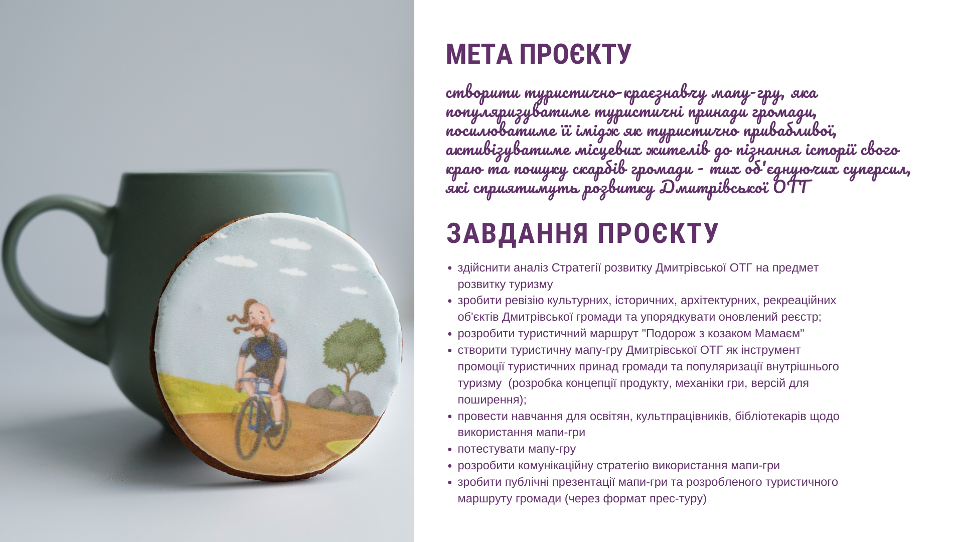Команда планує створити туристичну мапу-гру нашої громади "Подорож з Мамаєм". Очікують, що цей культурний креативний продукт буде цікавим як для жителів всієї громади, так і туристів та мандрівників.