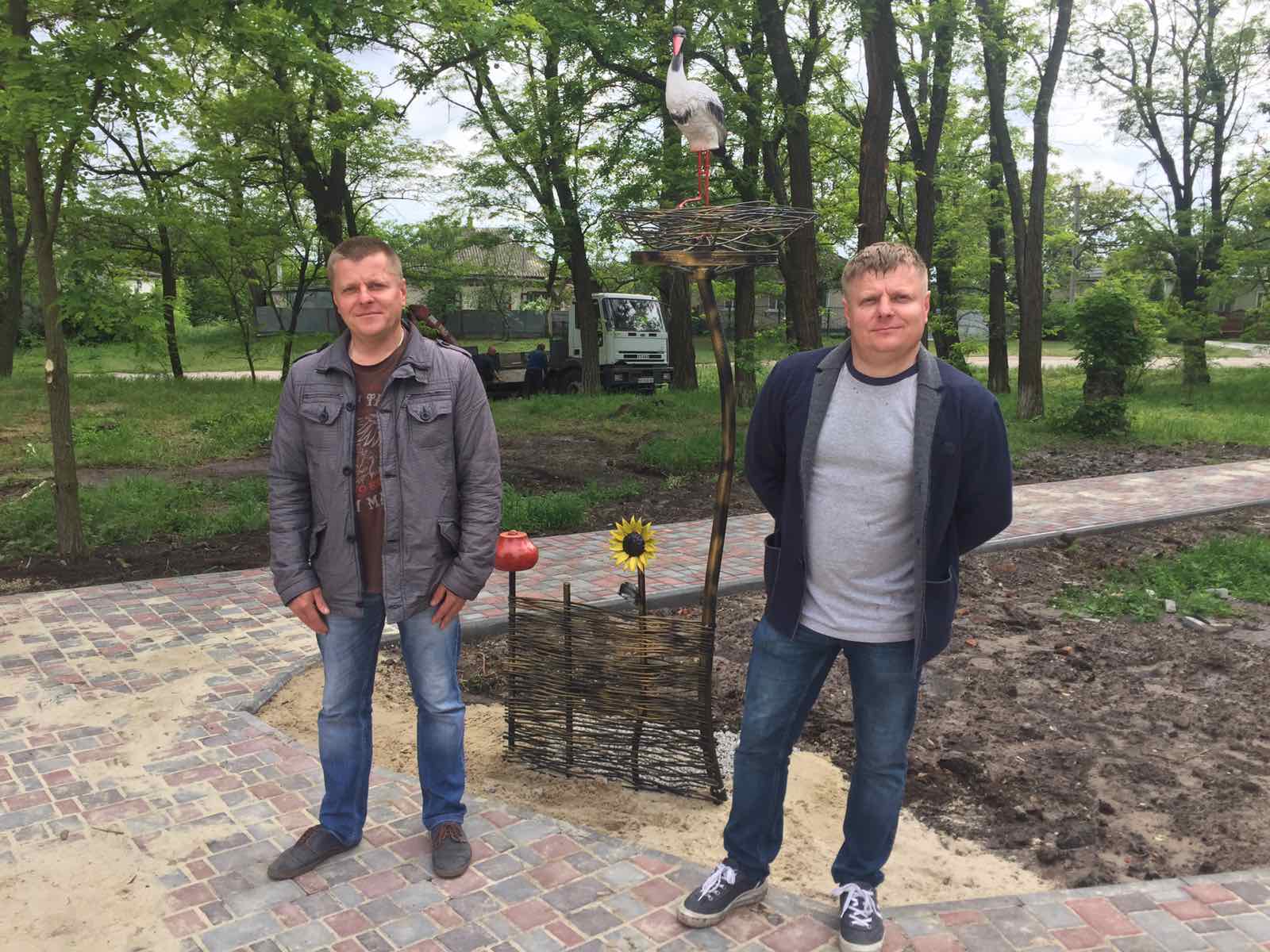Всією громадою подякуємо та побажаємо їм на довгі роки натхнення та творчих успіхів. Сподіваємось, що приклад Олега та Юрія спонукає на ініціативність та креативність у творчості і наших земляків. Підтримайте акцію,наповнимо наш парк арт-об’єктами, щоб ця краса милувала око кожного перехожого.