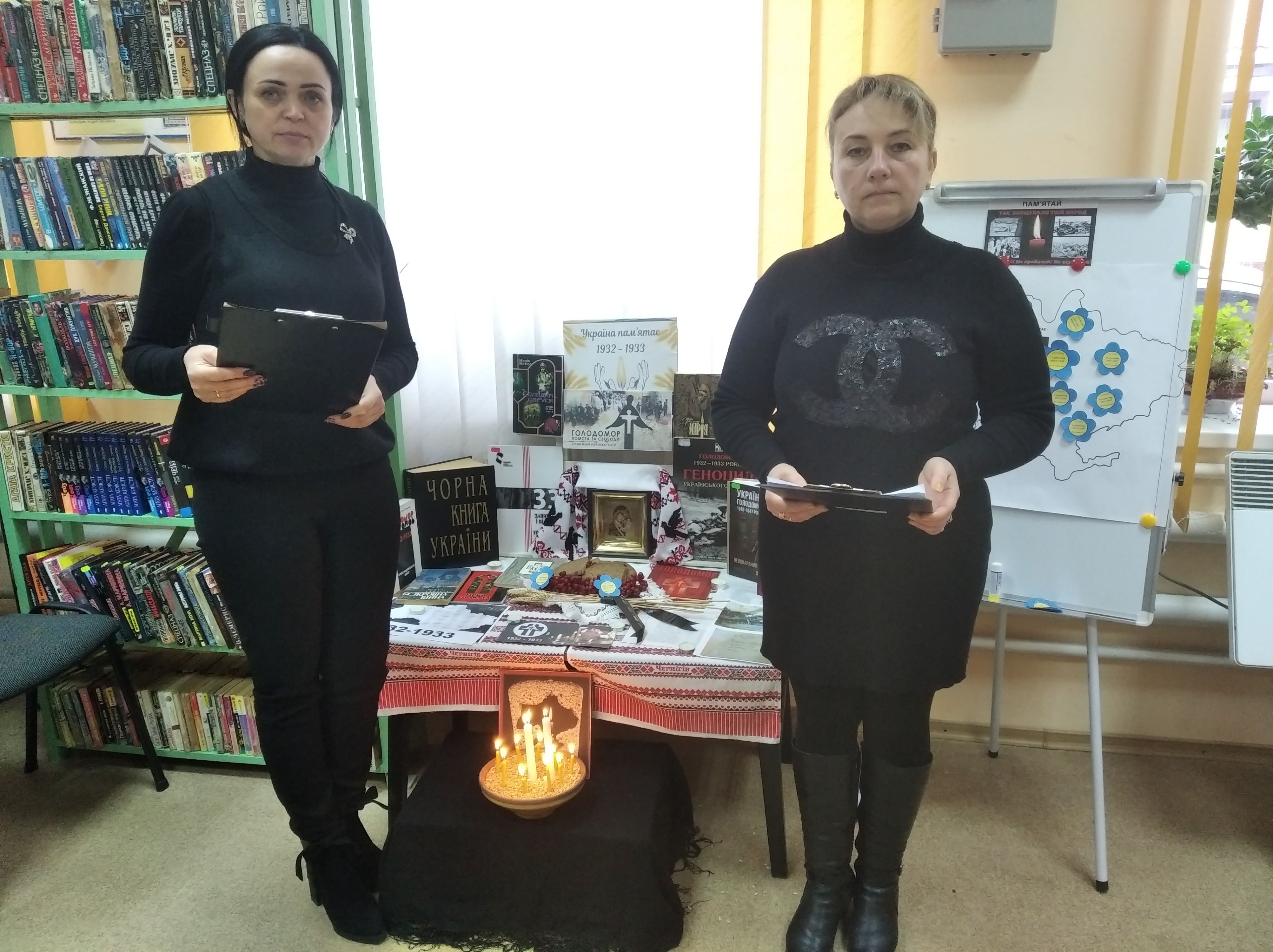 Для користувачів сільської бібліотеки оформлена тематична книжкова виставка-інсталяція « Україна пам’ятає 1932-1933»