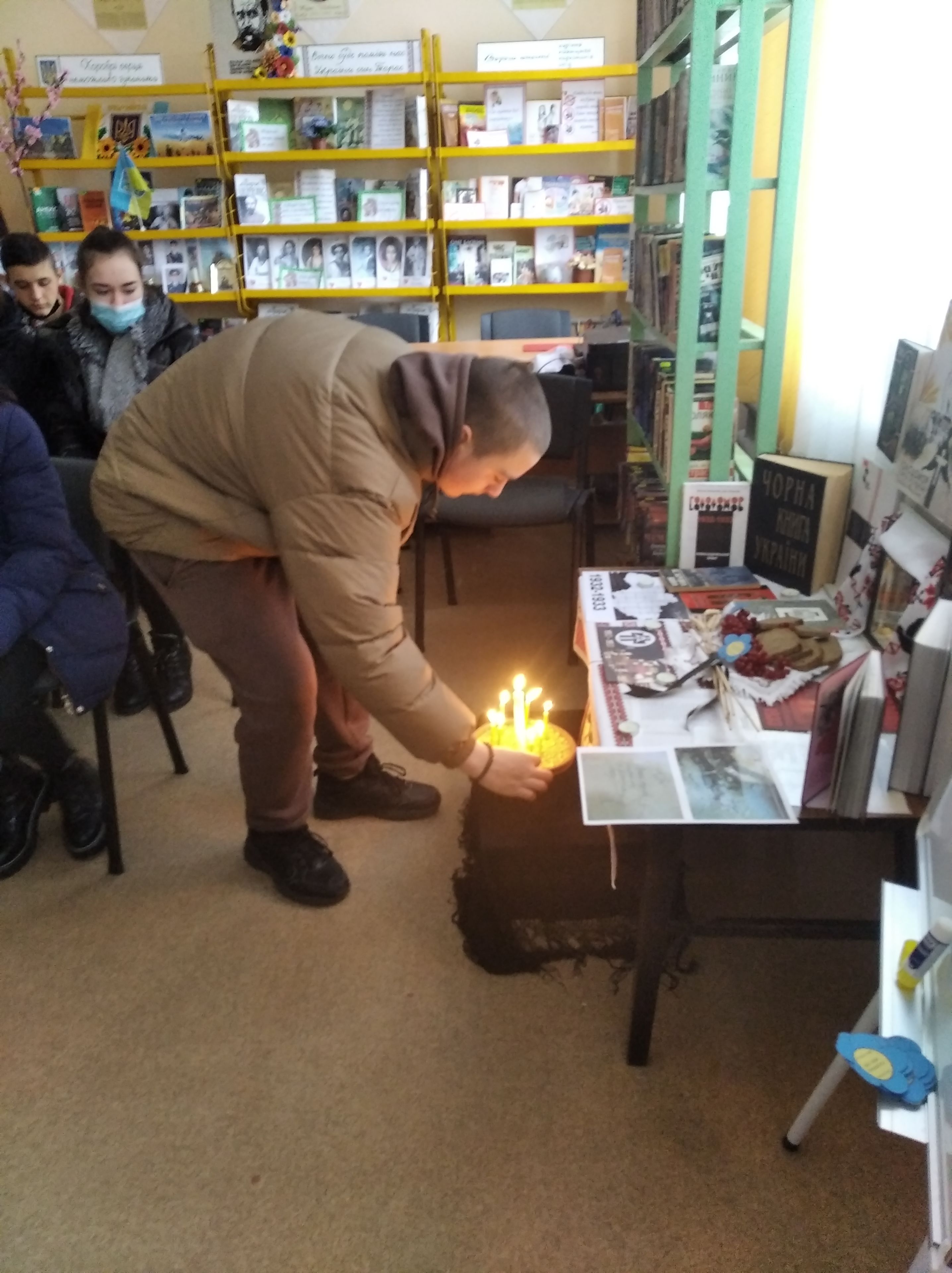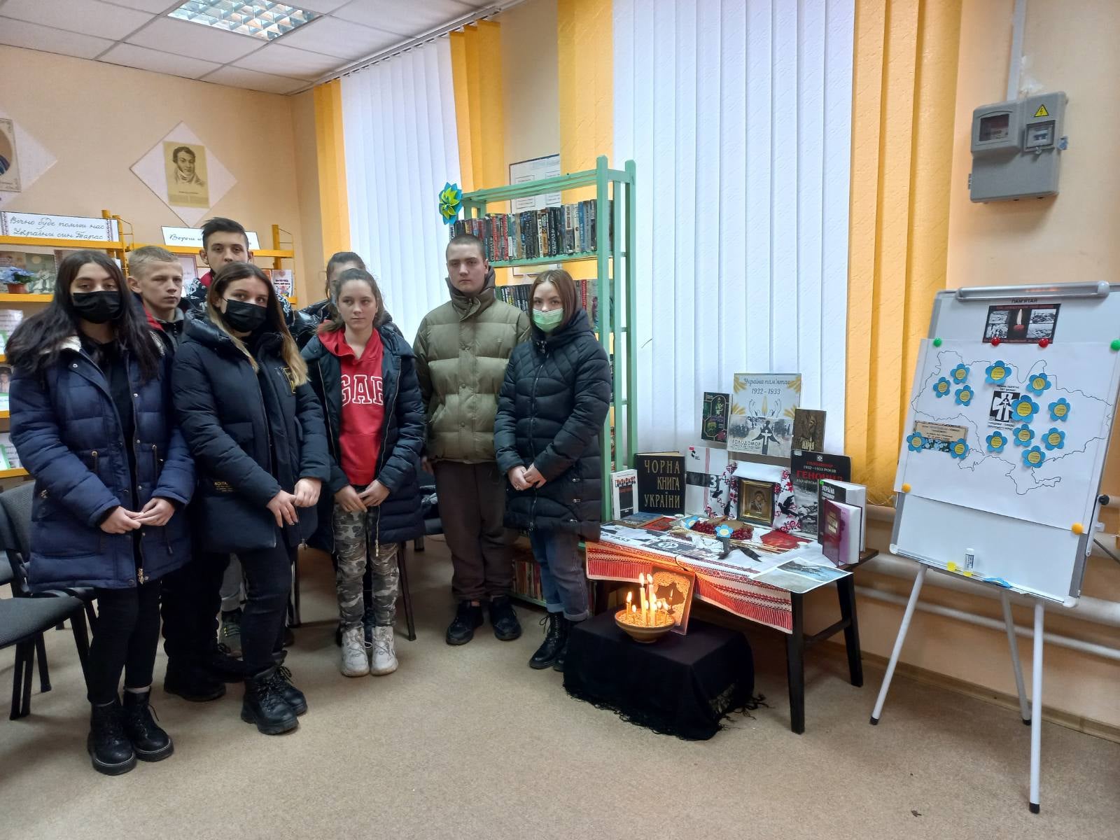 Всі учасники долучилися до акції « Незабудька пам’яті», запалили свічки та голубими квітками на мапі України позначили місця штучного голоду тому, що квітка незабудька – це символ пам’яті жертв голодомору.